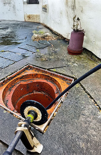 Fast clearing of blocked overflow relief gullies connected to stormwater lines that aren’t draining during rain, preventing water from entering buildings.